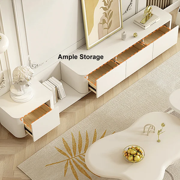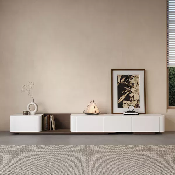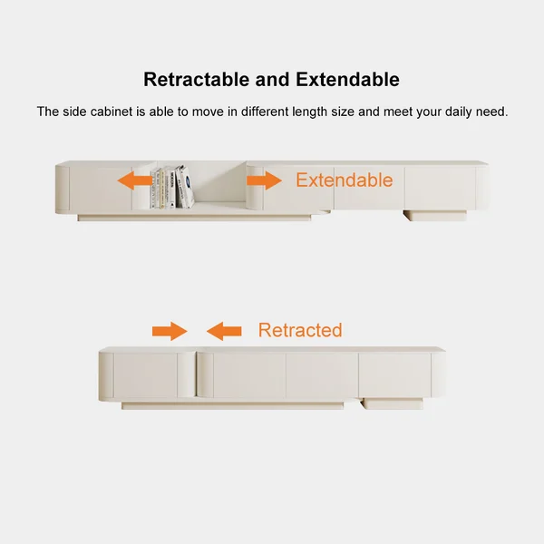 Elevate your home TV viewing experience with this modern, innovative, and expandable TV table, combining functionality and beauty in one piece of furniture. This contemporary cabinet offers superior flexibility in arrangement and organization, making it an ideal choice for both large and small spaces.