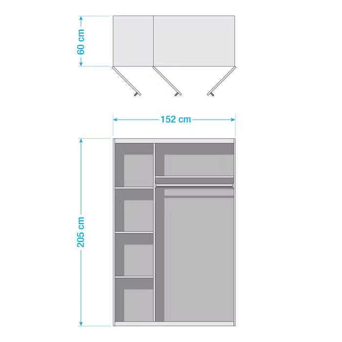 Width 152 cm x Height 220 cm x Depth 60 cm