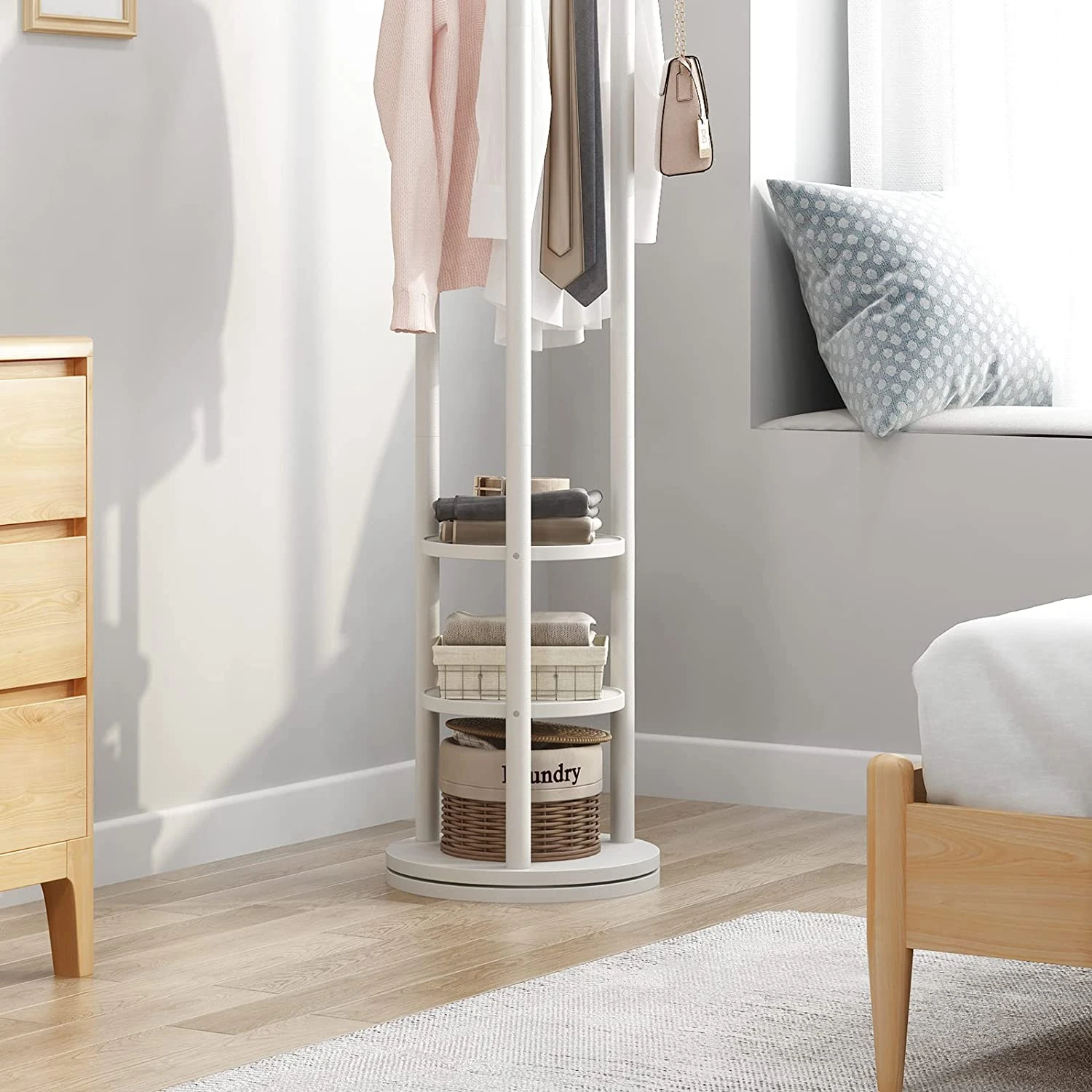 1. 360 Degree Rotation: Allows you to easily access all clothes or bags from all sides, making it very practical.