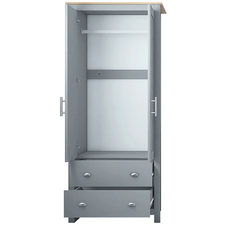 • 3D Oak Top Panel: The Aras 2-Door Wardrobe features an elegant 3D Oak top panel, which adds a touch of luxury and modernity to its design.