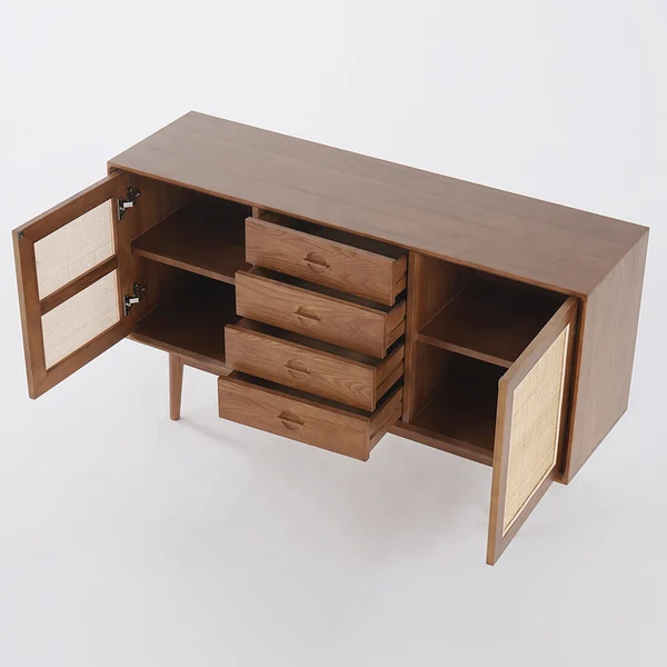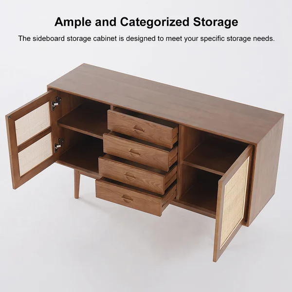 Keep your home clean and organized with this buffet. Featuring rattan details and a rustic charm, this sideboard features a Nordic design to enhance the elegant appeal of any decor. With two doors and four drawers, it can be used to store essentials such as linens, plates or tablecloths, crockery, and other dining essentials.