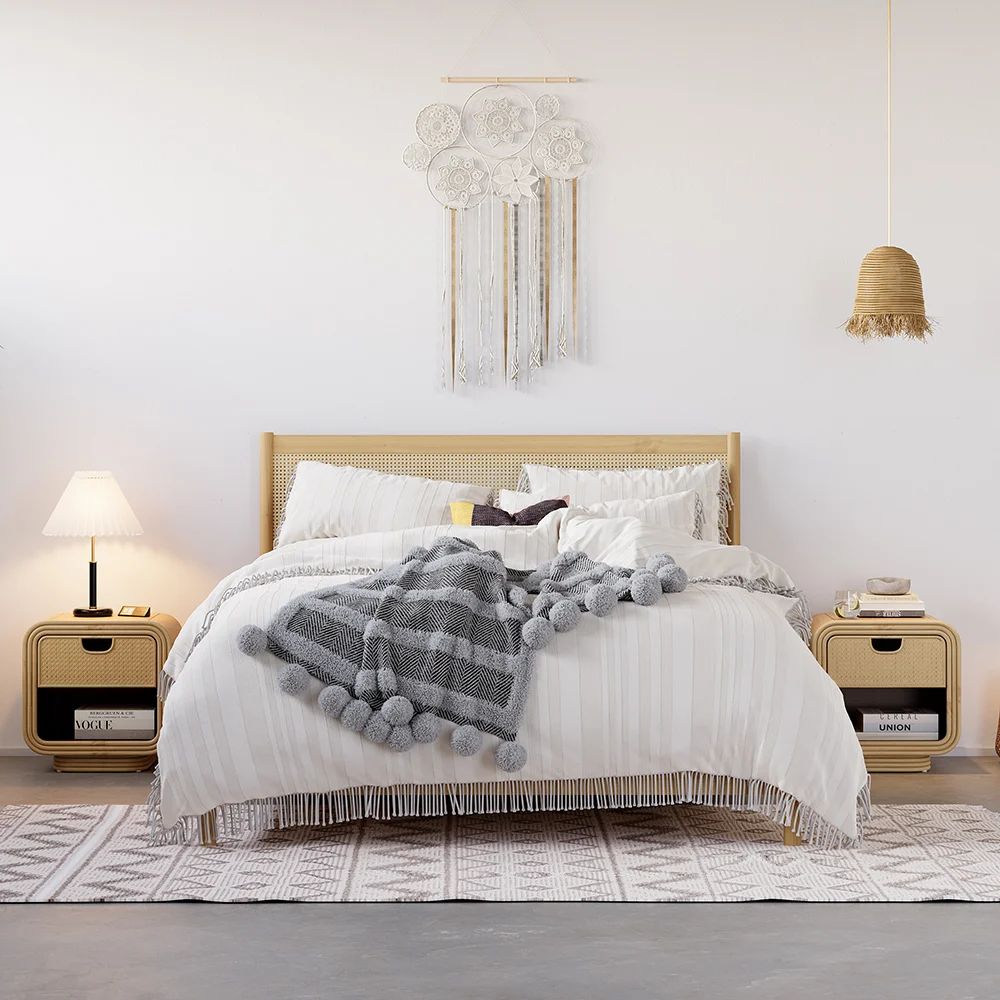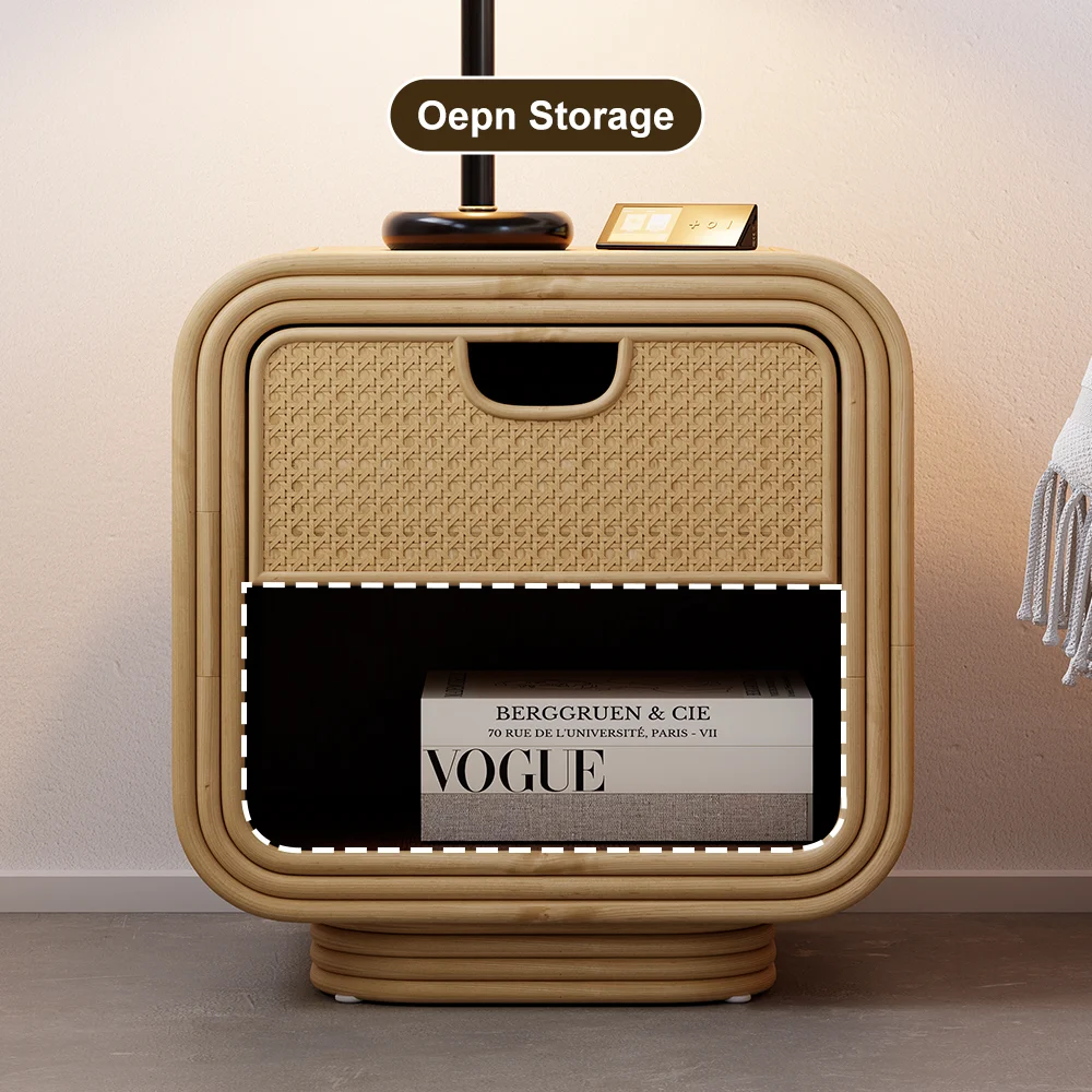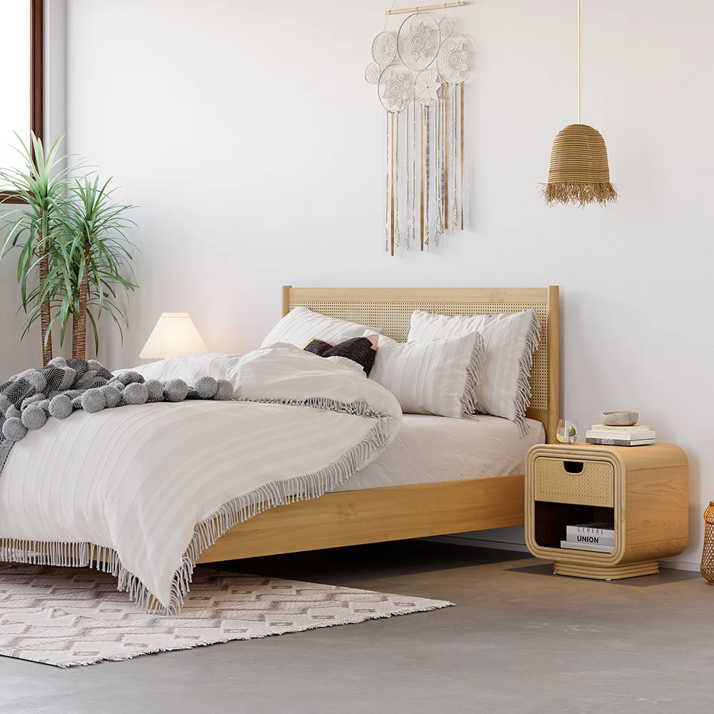The Damnal bedroom table combines classic and modern, with a unique bohemian touch that adds beauty and serenity to any room. The table features hand-woven rattan fibers, giving it a charming look and unique texture. Its warm, natural colors blend with any decor, creating an atmosphere of comfort and elegance in your space.