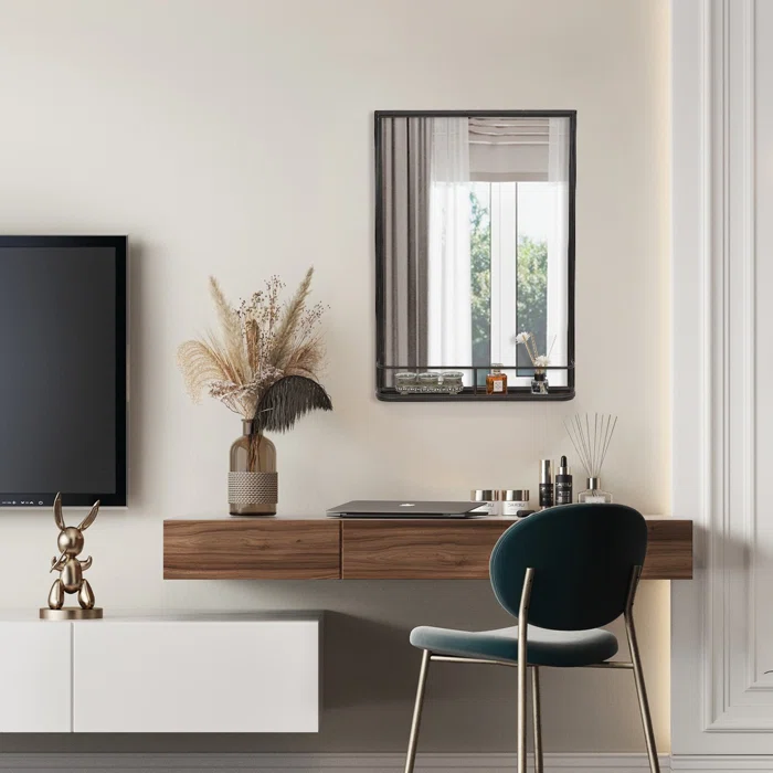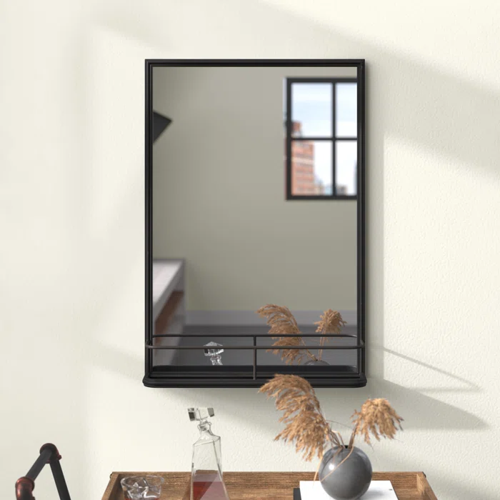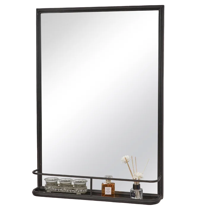 If you are looking for a quality wall mirror that will last for years, Davis Mirror is the perfect choice. The Davis Mirror features a rectangular metal frame, which gives it solidity and strength in addition to a modern design that suits all types of decor. The shelf built into the mirror design provides you with extra space to display decorations or beauty and care items.