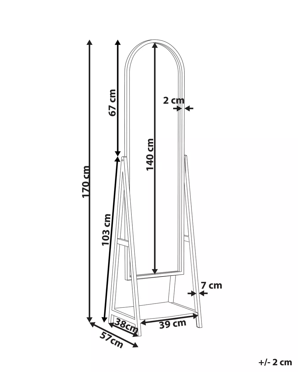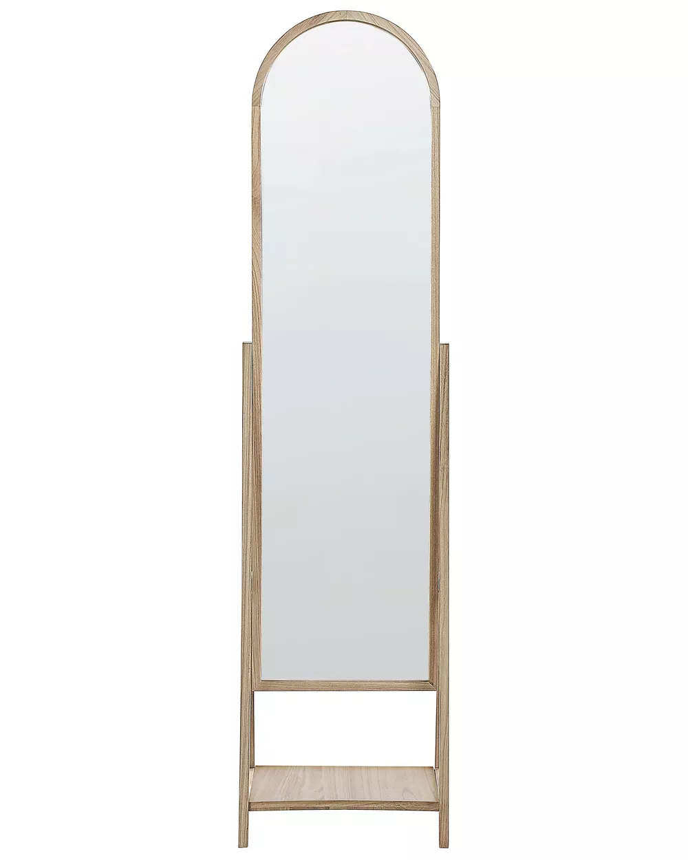 The mirror features a built-in lower shelf, providing practical storage space for neatly organizing books, accessories, or everyday items. With its space-saving vertical design and natural look, this mirror is an ideal addition to bedrooms and dressing rooms, creating a cohesive and stylish space. Simplicity, practicality, and timeless elegance .
