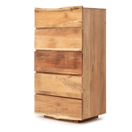 Make your bedroom decor more organized and stylish with the Fiora storage unit made of natural wood. The unit features 5 spacious drawers, providing ample space for storing your personal items in an organized and easily accessible manner. Metal drawer runners ensure smooth, easy-to-open drawers.