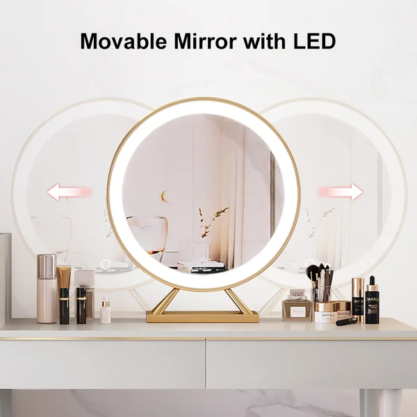 A practical and distinctive dresser crafted entirely from natural wood, complete with water- and rust-resistant metallic details at the ends of the legs, adding a touch of elegance and distinction. It features six drawers, providing ample storage space for jewelry, hair accessories, perfumes, cosmetics, and hair care products.It also features a foam-padded seat for added comfort during use. It also features a circular mirror with LED lighting to enhance its elegance and functionality. Available in black and white.