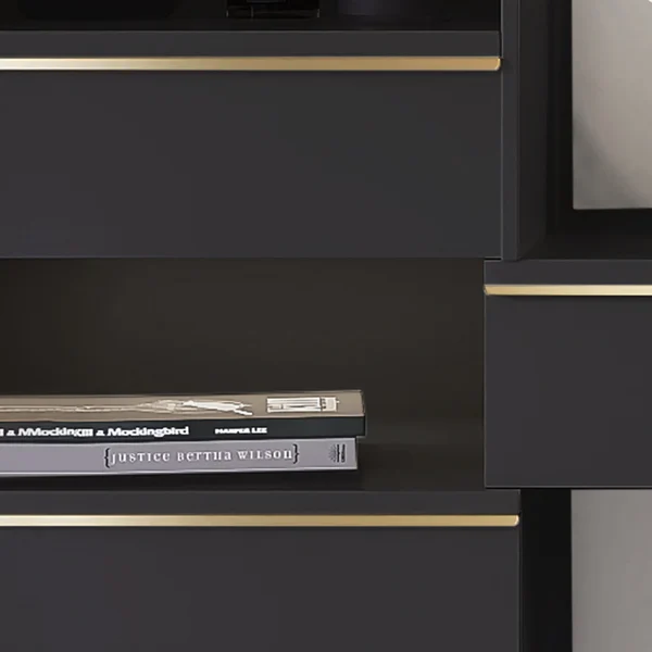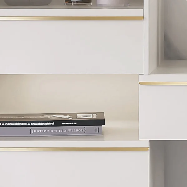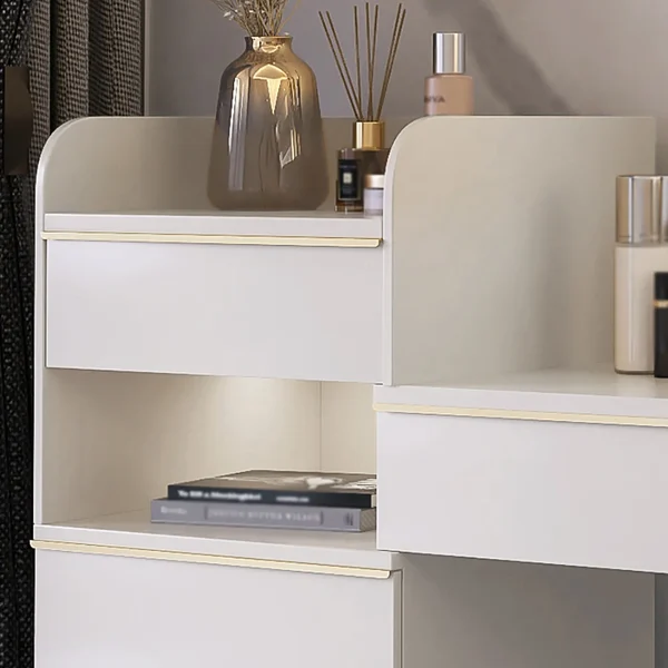 A practical and distinctive dressing table provides ample space for organizing makeup and accessories with ease. Its modern design combines beauty and function, making it the perfect choice for adding a touch of elegance and organization to your bedroom.
