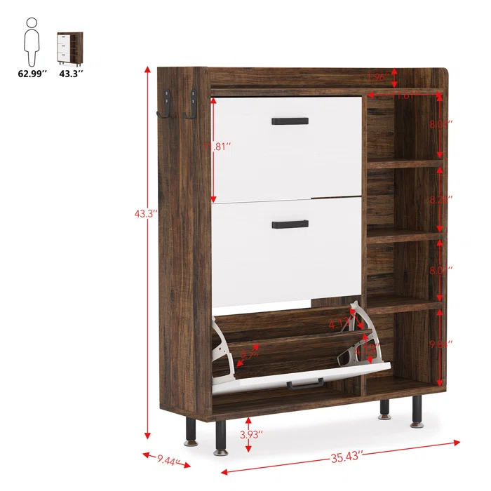Say goodbye to clutter and organize your shoes neatly and neatly with the Kalzar Modern Shoe Rack, which features three pull-out drawers and several open shelves. Don’t hesitate to buy it.