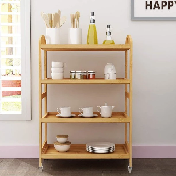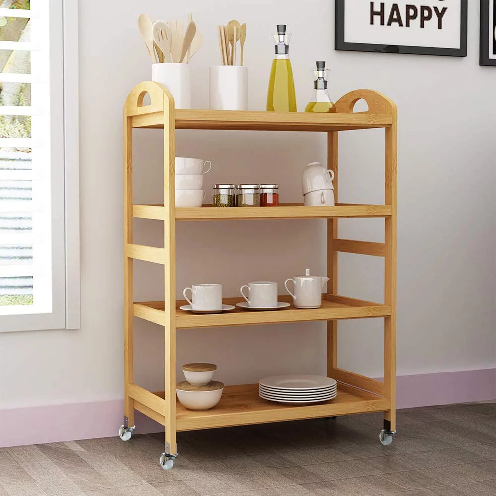 Advantages of Lavi Natural Wood Kitchen Cart 4 Shelves