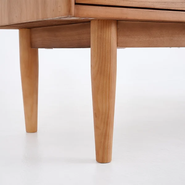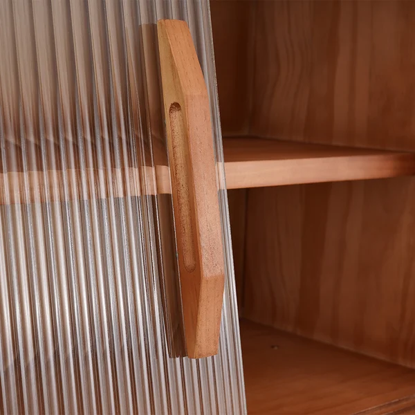 Add a mid-century modern touch to your home with this sideboard crafted from natural wood for stability. Featuring four doors that reveal six shelves, it offers ample space for storing dinnerware, dishes, and other kitchen utensils, making it both stunning and functional.