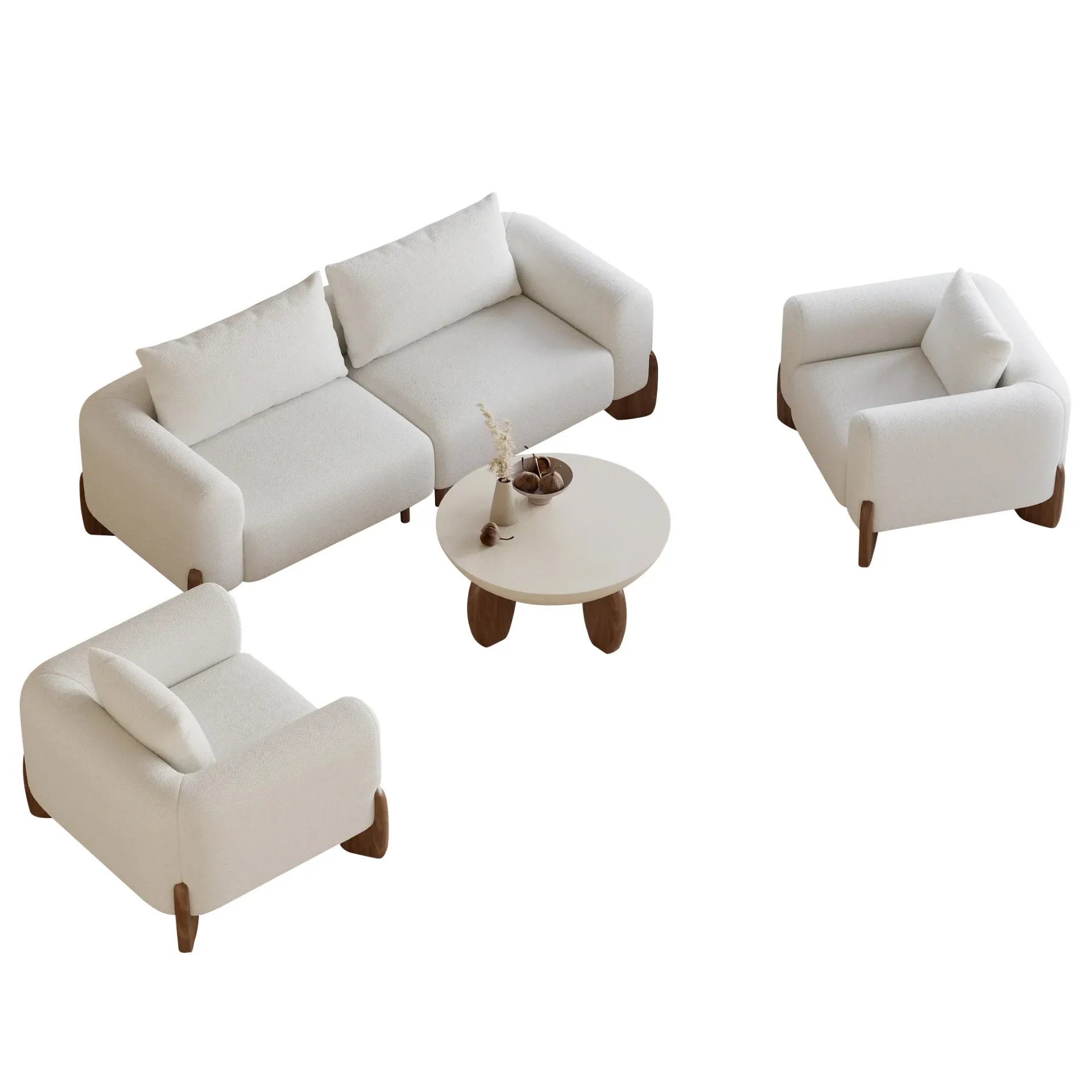 The rounded lines add a sense of visual comfort and tranquility, and reduce sharp angles, making the set more welcoming and easier to move around in the room.