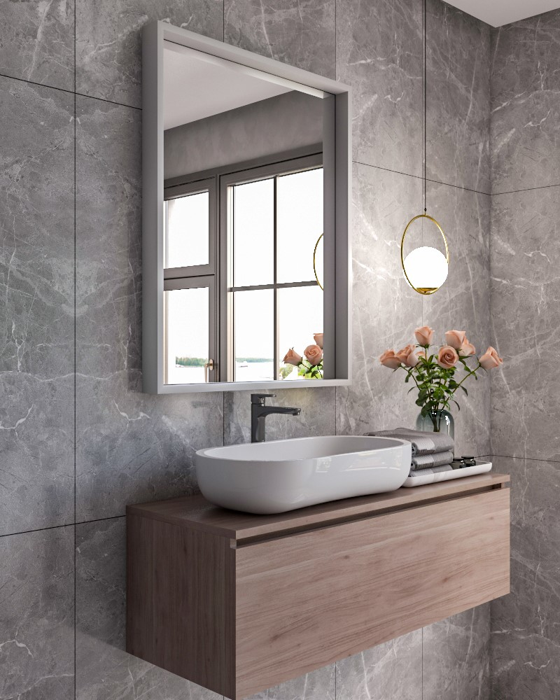 The Orlina mirror provides the perfect size in the bathroom or dressing room, with convenient dimensions (80 cm width and 100 cm height), allowing it to blend naturally with any existing decor.