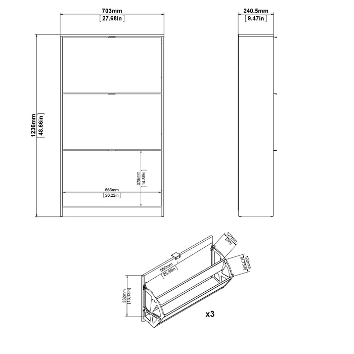 Otnam Modern 3 Drawer Shoe Organizer