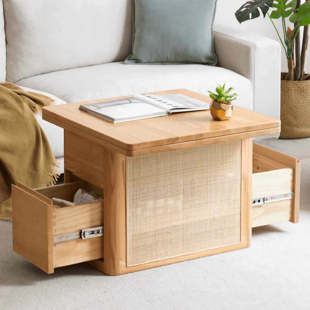 Why choose a natural wood coffee table with Perla rattan?