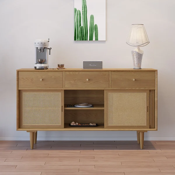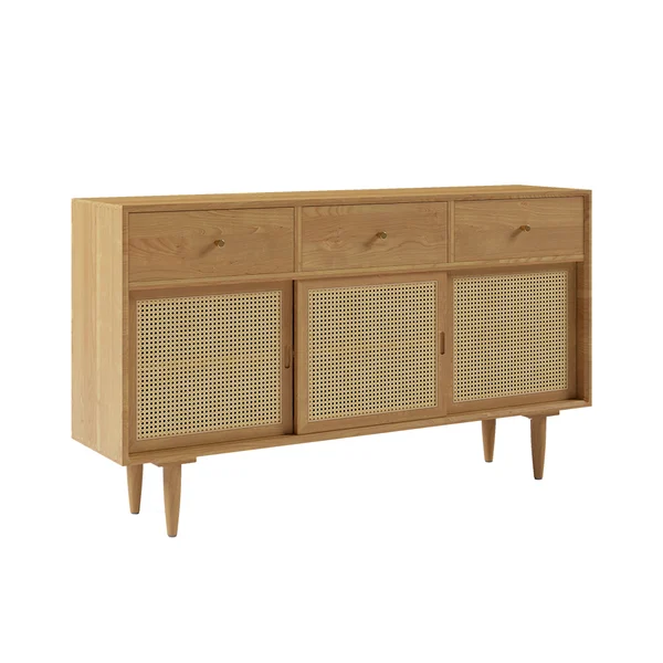Add effortless sophistication and simple utility to any entertaining space with this essential buffet, the perfect piece for your well-curated aesthetic. Three retractable doors open to reveal ample storage for linens and dinnerware, while three drawers can be used to store your smaller and essential items. Supported by tapered legs, it ensures stable support and a long-lasting option.