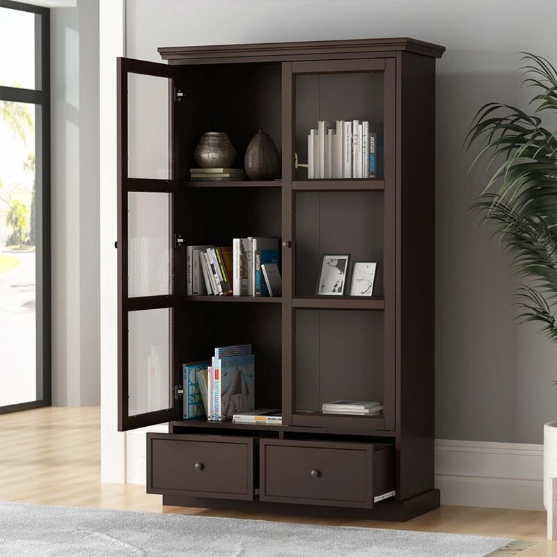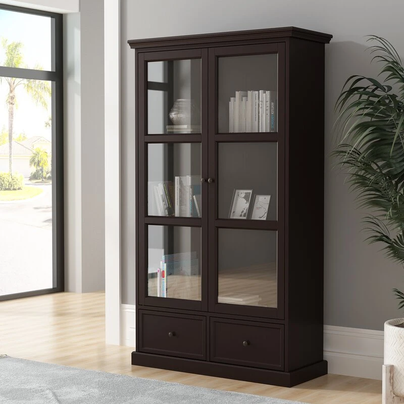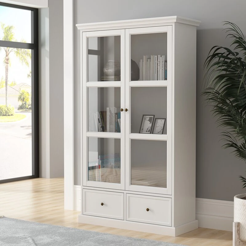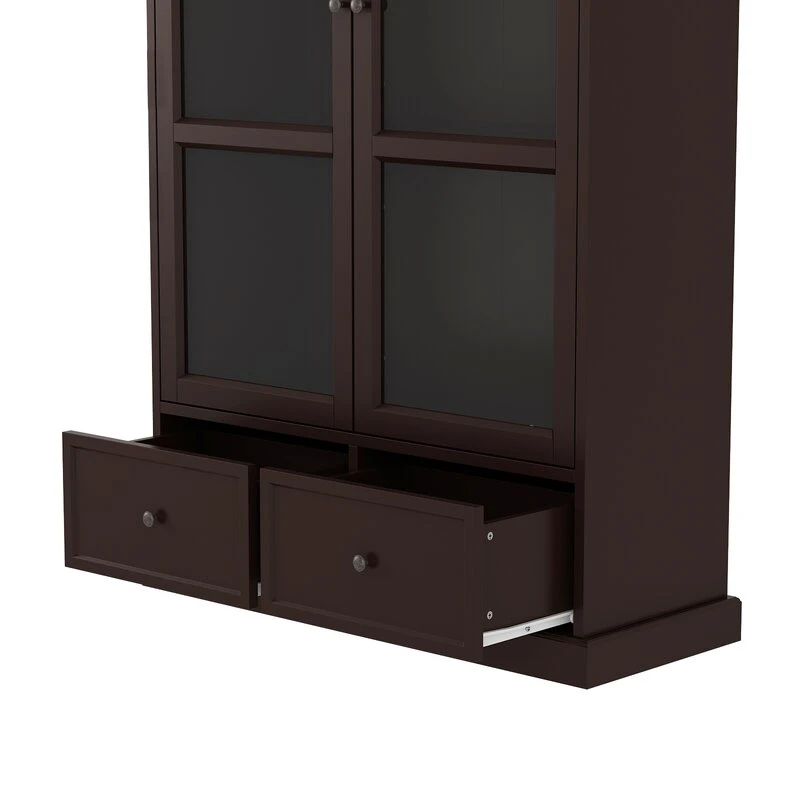 This cabinet with clear doors gives you the opportunity to proudly display all your items without collecting dust. Sublime! This storage cabinet features a sturdy construction that will last for years to come. With kids in the house? Use the non-stick hardware kit to secure it to the wall for safety.