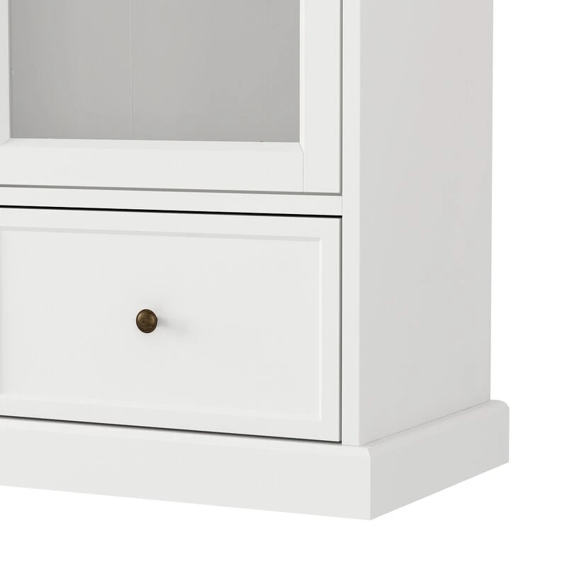 Silverware received at your wedding, antique vases… This cabinet with clear doors gives you the opportunity to proudly display all your items without collecting dust. Sublime! This storage cabinet features sturdy construction that will last for years to come. With kids in the house? Use the non-stick hardware kit to secure it to the wall for safety.