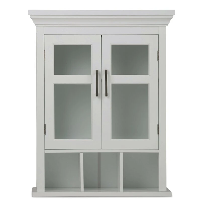 Looking to maximize space and organize your bathroom in a practical and stylish way? This stylish wall cabinet from Elwarsha offers the perfect solution! Featuring a contemporary design, this cabinet includes two doors that reveal an adjustable shelf, as well as three open compartments, giving you extra flexibility for storing toiletries and other everyday items.