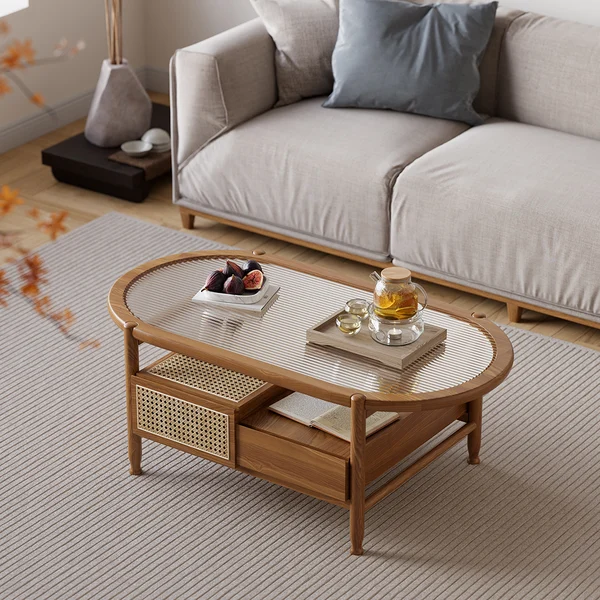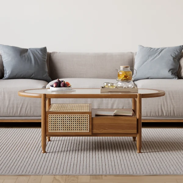 Divano coffee table with shelf and drawer for storage, natural wood