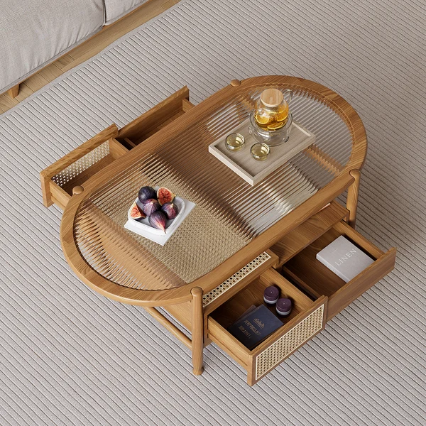 Wood and glass coffee tables with 4 drawers