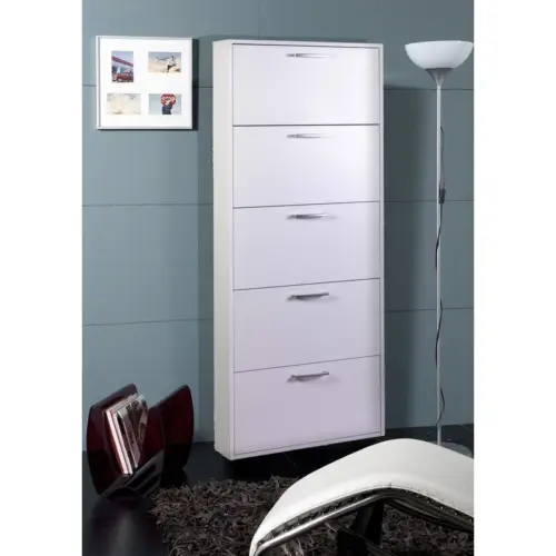 The Maureen shoe cabinet features a sleek and modern design that is sure to catch the eye.