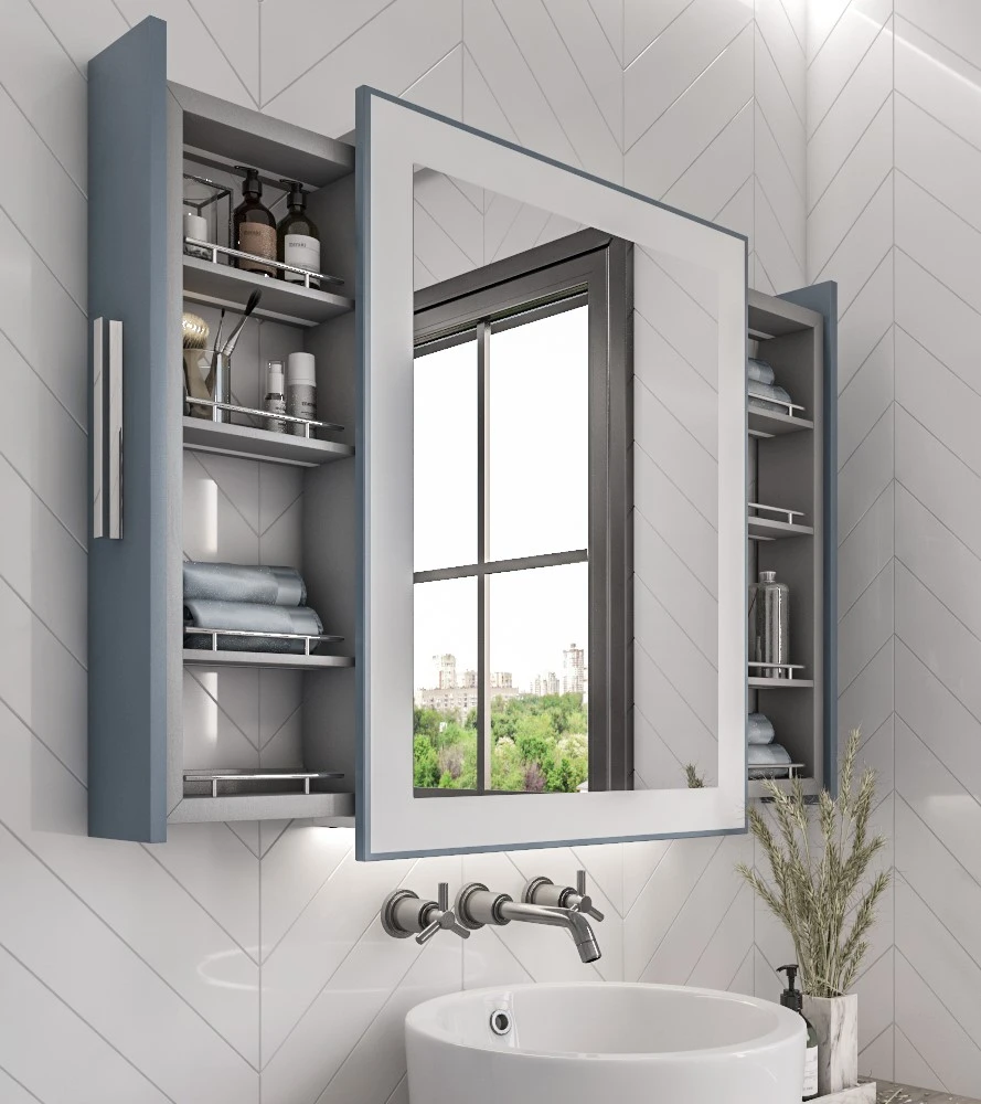 وحدات تخزين متحركة مع مفصلات جرار تحتوي مرآة آلبا على وحدات تخزين خلفية مزودة بمفصلات جرار، مما يجعل عملية فتح وإغلاق هذه الوحدات أسهل وأكثر سلاسة. يمكنك تخزين أغراضك بشكل منظم دون الحاجة للبحث عن مكان لها.