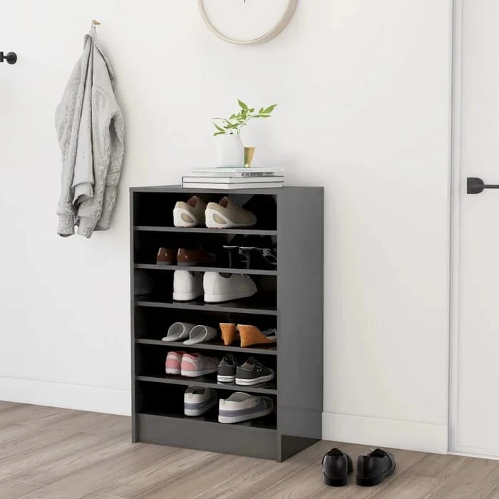 1. تصميم مميز يناسب جميع أنواع الديكور، إذ يضفي اللون الأسود لرف الأحذية  لمسة أنيقة لديكور ال