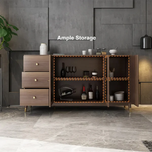 أضف لمسة من اللمسة العصرية إلى المساحة الخاصة بك مع هذه الخزانة الجانبية العملية. تتميز بـ 3 أبواب للكشف عن رفين، وتتمتع بمساحة واسعة لتخزين بياضات الطعام والأطباق ومجموعات أدوات المطبخ الأخرى، مذهلة وعملية. ثلاثة أدراج تسمح بمساحة تخزين أكبر. مصنوع من الخشب الطبيعي ومعدن عالي الجودة.