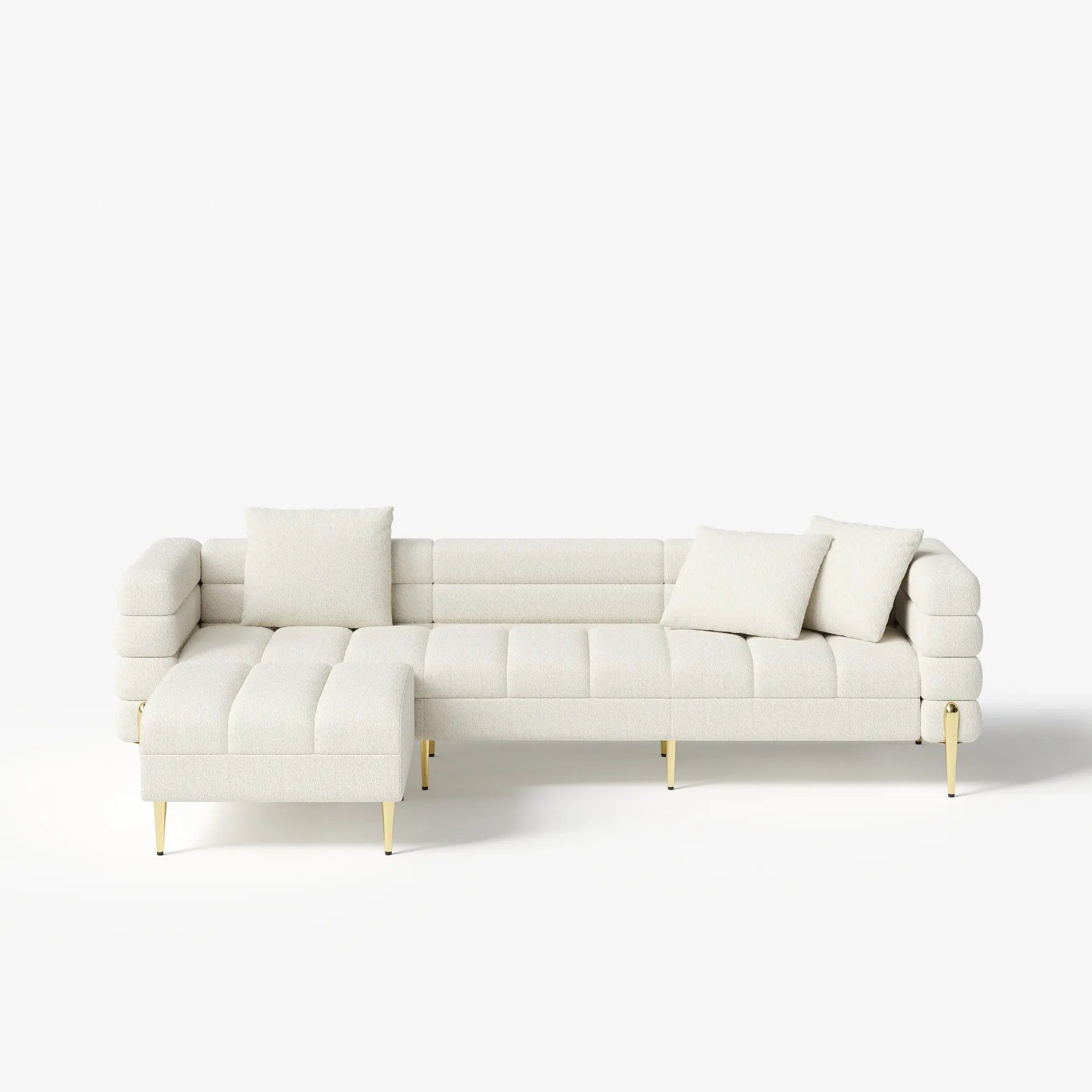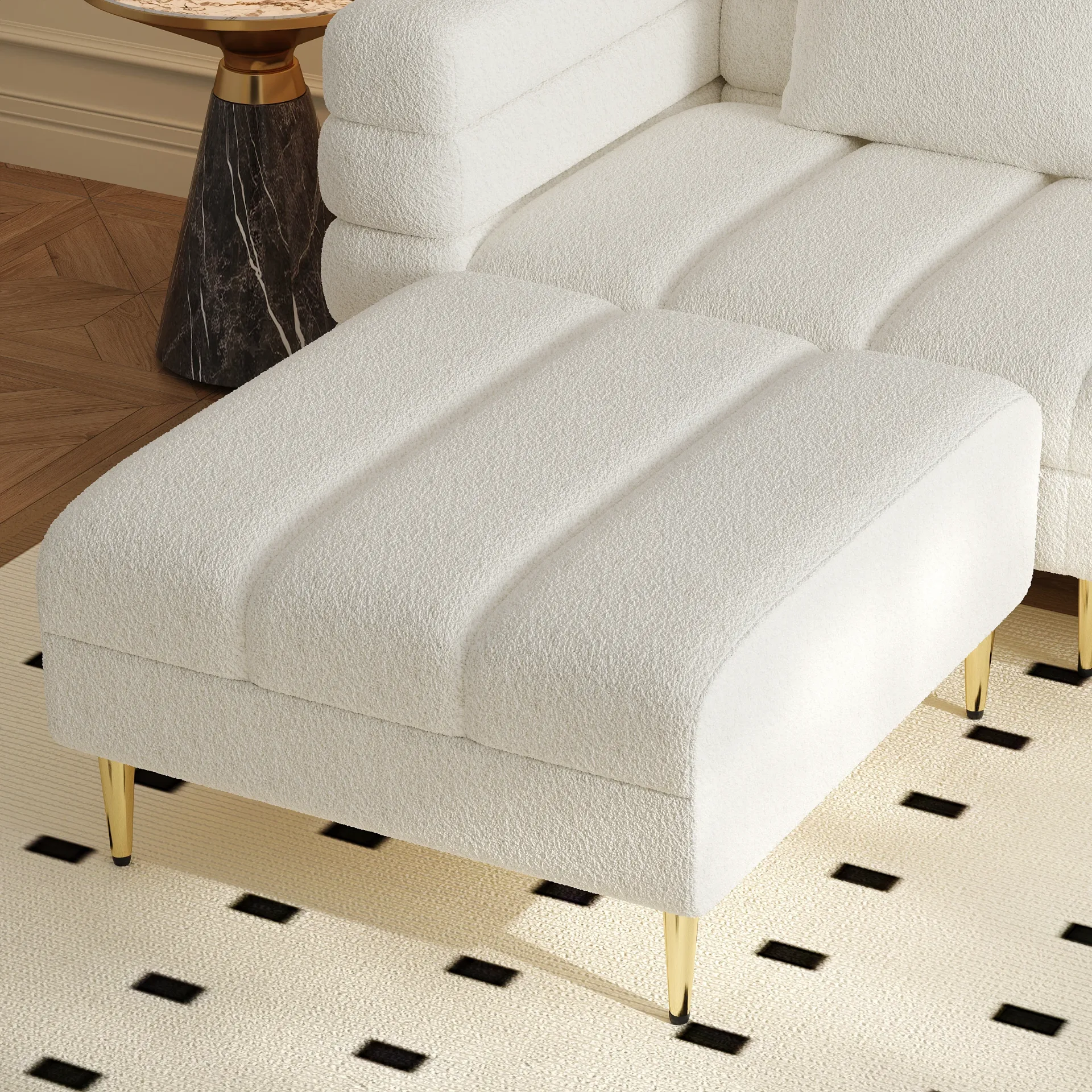 مميزات أميليس طقم أريكة عصرية من الخشب الطبيعي مع كرسي بذراعين وبوف بأرجل معدن ذهبية