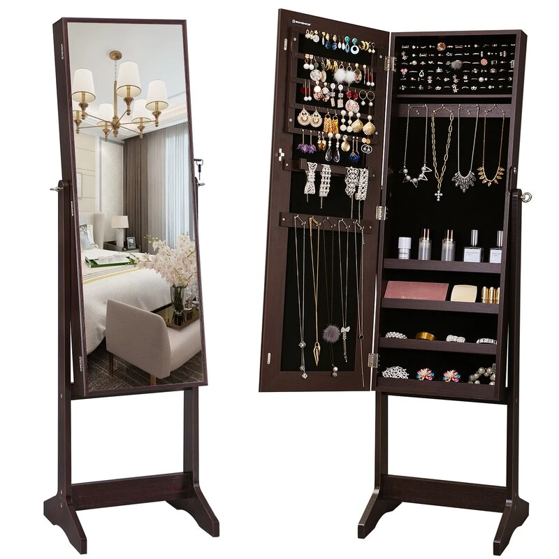 - تصميم قفل آمن:لضمان حماية أغراضك الثمينة، تأتي الخزانة مزودة بـ قفل آمن، مما يمنحك راحة البال بأن مجوهراتك ستظل محمية بعيدًا عن أيدي غير المرغوب فيهم.