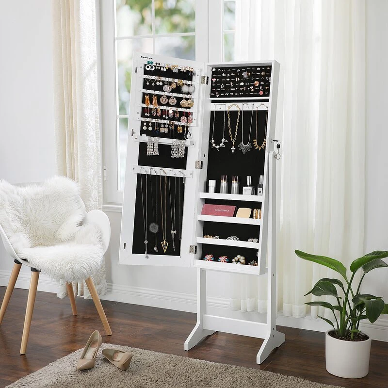 مزايا خزانة أنجلينا للمجوهرات مع مرآة كبيرة: