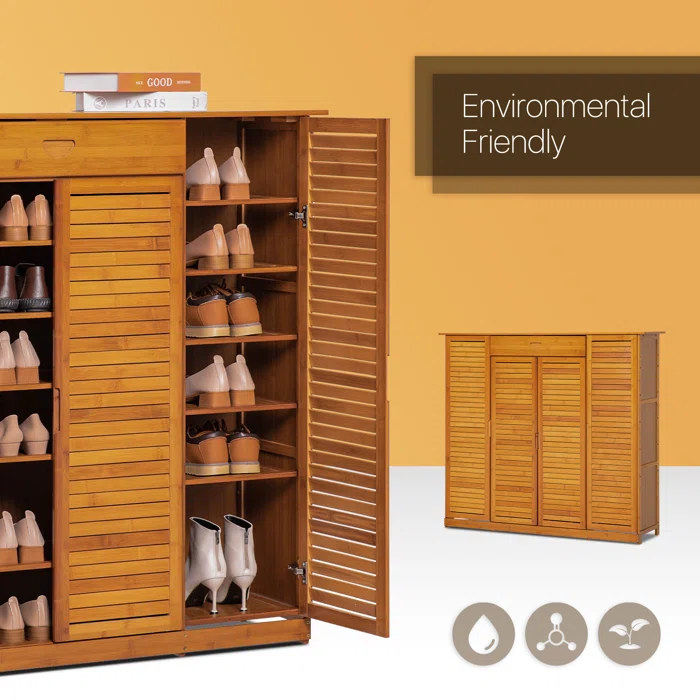 أضف رف أحذية البامبو الفريد مع الضلف المفرغة إلى مخطط الديكور الخاص بك واستمتع بتنظيم أحذيتك على أرففه الواسعة. إنه أيضًا يوفر مساحة الأرض. ولأنه مصنوع من خشب طبيعي، من السهل الحفاظ على نظافته.