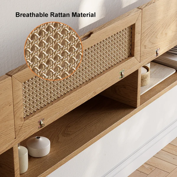 - تصميم أنيق: يجمع بين الخشب الطبيعي و الراتان لخلق مزيج من الجمال والعملية.
