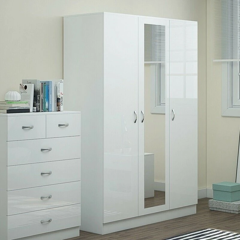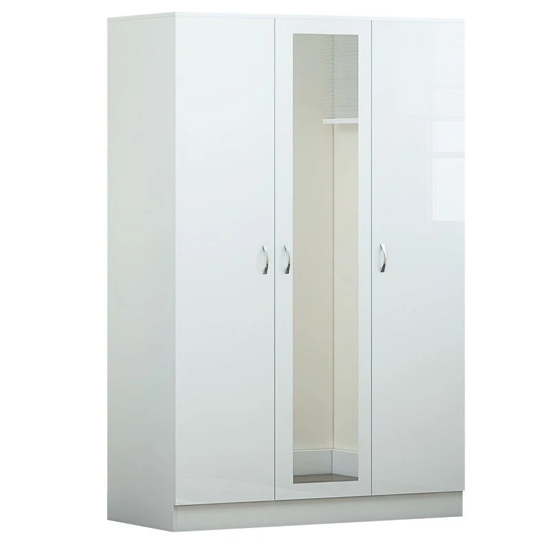 تصميم عصري ومتميز: خزانة بريندل 3 أبواب الورشة مصممة بثلاثة أبواب شديدة اللمعان ومرآة بالطول، مما يجعلها إضافة مثالية لأي غرفة.