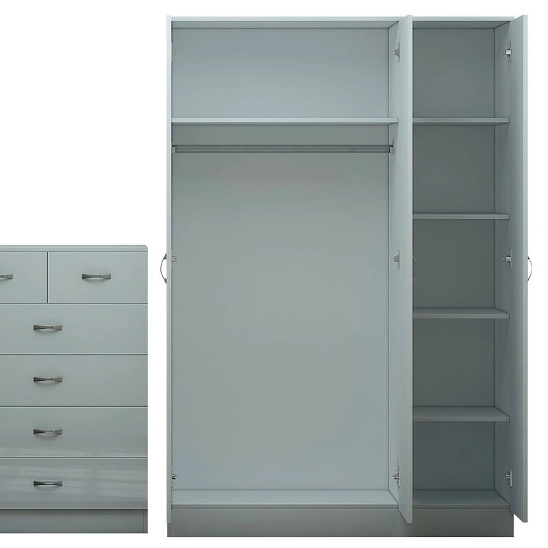 خزانة بريندل 3 أبواب الورشة هي الخيار المثالي لأولئك الذين يبحثون عن تصميم عصري وأنيق يجمع بين الوظائف و الجمال. تتميز الخزانة بثلاثة أبواب شديدة اللمعان مع مرآة بالطول على أحد الأبواب، مما يضيف لمسة من الأناقة لأي غرفة. التكوين الداخلي متكامل ويشمل سكة للتعليق و رف في الباب المزدوج مع خمسة أرفف خلف الباب الأيمن، ما يوفر لك مساحة منظمة لتخزين الثياب، الأحذية، والفساتين بشكل أنيق ومرتب. تضمن لك الخزانة الصديقة للبيئة المصنوعة من الخشب الطبيعي أقصى درجات المتانة والجمال، مع ألوان فاتحة تضفي مزيداً من الإشراق والاتساع على الغرفة.