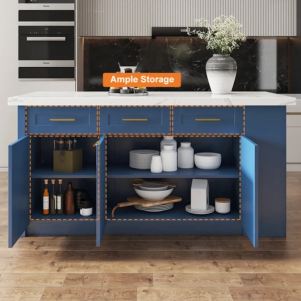 مزايا جراتا ترابيزة مطبخ وسط خشب طبيعي متعددة الاستخدامات بوحدة تخزين 3 ضلف و3 أدراج