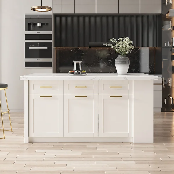 • وحدة جانبية برفوف مفتوحة لعرض كتب الطهي أو أدوات القهوة
