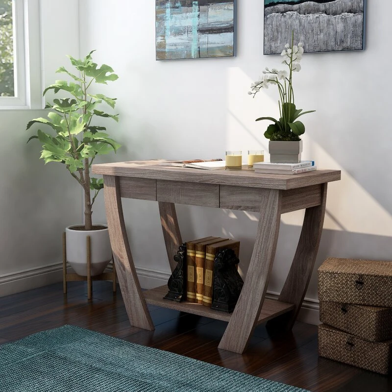 • رف ثابت للتخزين أو العرض: يمكن استخدام الرف الأسفل لتخزين الأشياء الضرورية مثل المفاتيح والبريد، أو لعرض الزهور والقطع الزخرفية.
