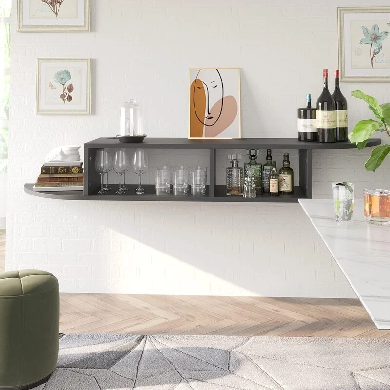 • رف كبير مثبت على الحائط: يتميز الحامل بتصميم معلق، مما يوفر لك مساحة واسعة تحت الحامل ويجعل عملية التنظيف أسهل بكثير.