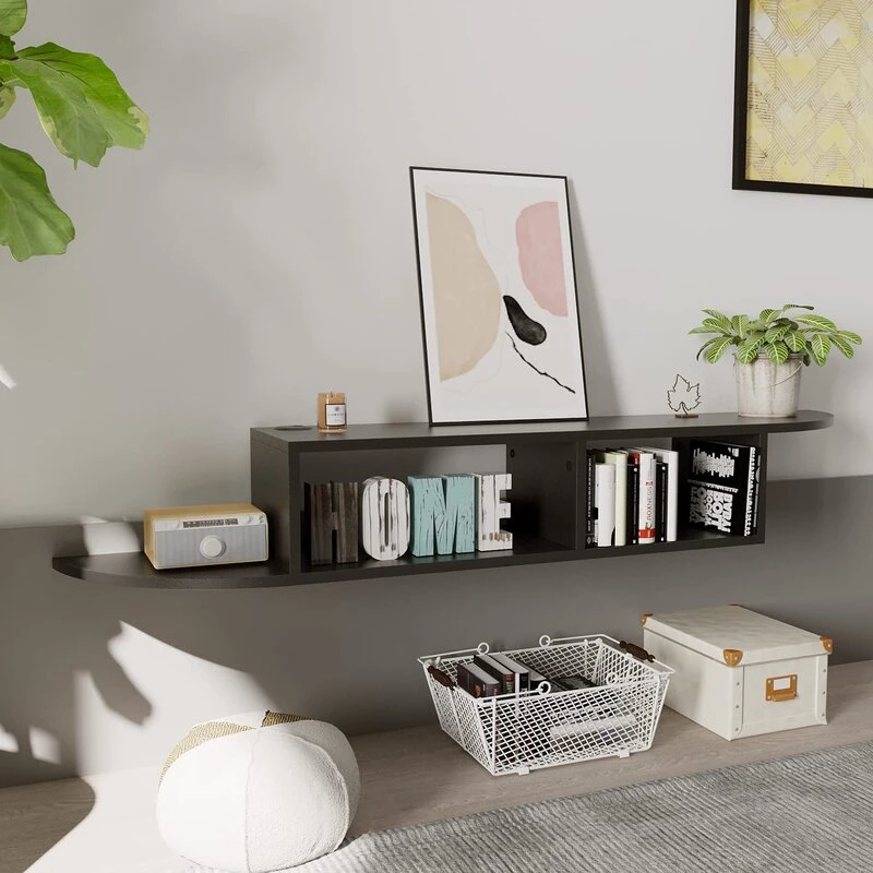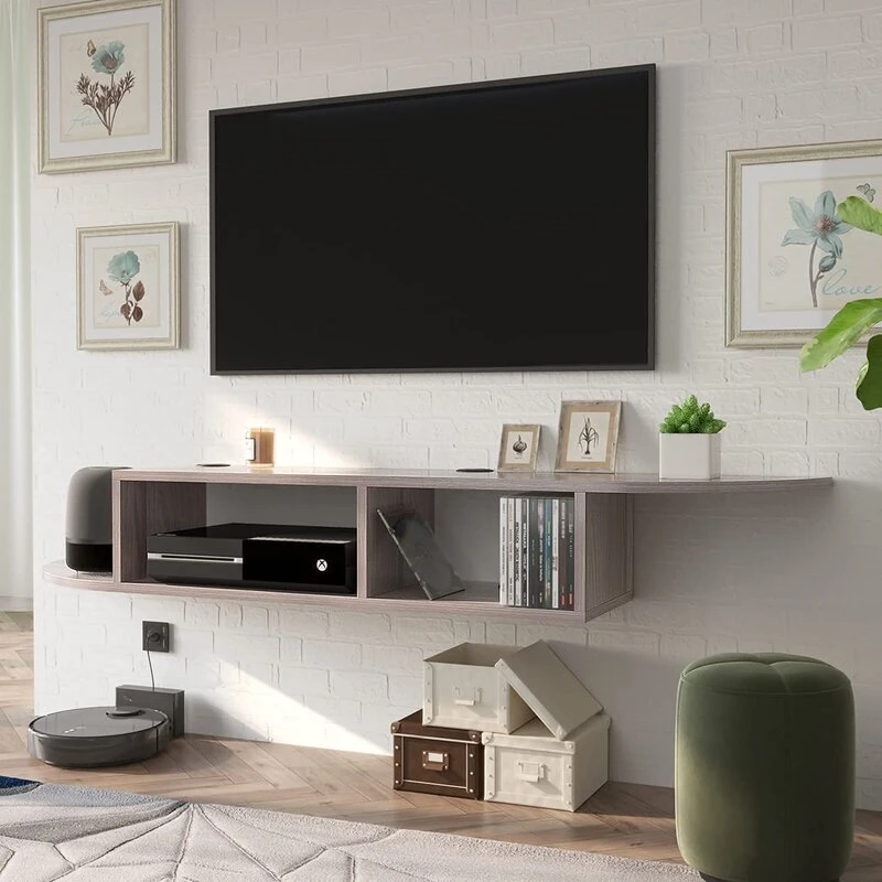 • مساحات تخزين مفتوحة: يوفر الحامل منافذ طاقة ومساحات لتخزين الأجهزة الإلكترونية مثل مكونات الصوت والفيديو، أجهزة إكس بوكس، صناديق الكابل، ومشغلات الأقراص المضغوطة.