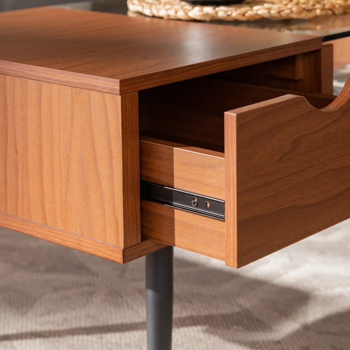 3. درج مدمج للتخزين: تحتوي الطاولة على درج سهل الفتح والغلق، مما يسهل عليك تخزين المتعلقات الصغيرة مثل أجهزة التحكم عن بعد أو المفاتيح.