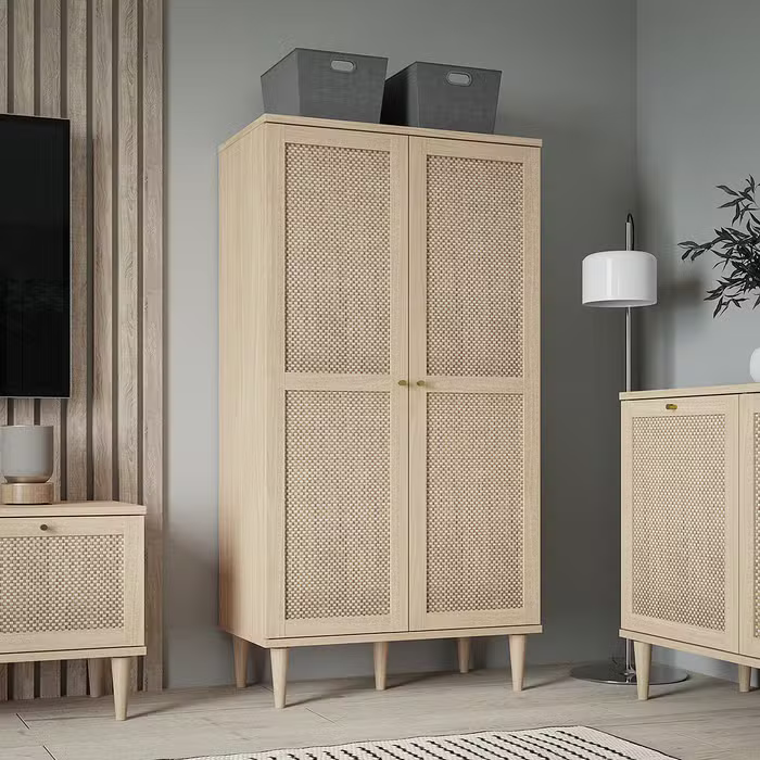 • خزانة روتان عصرية وأنيقة تضفي لمسة جمالية طبيعية على غرفة نومك.