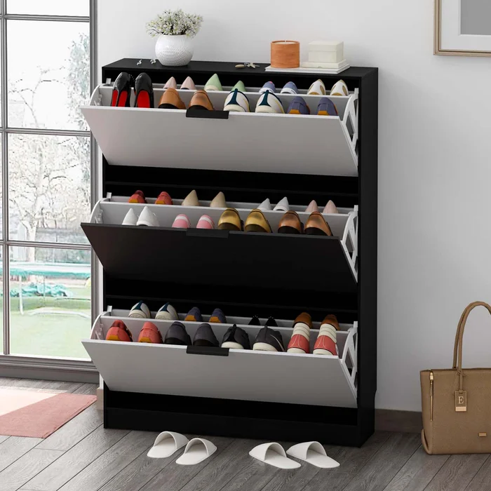 يمكنها استيعاب حتى 18 زوجًا من الأحذية موزعة على 3 أدراج قلاب، كل درج مكون من صفين.