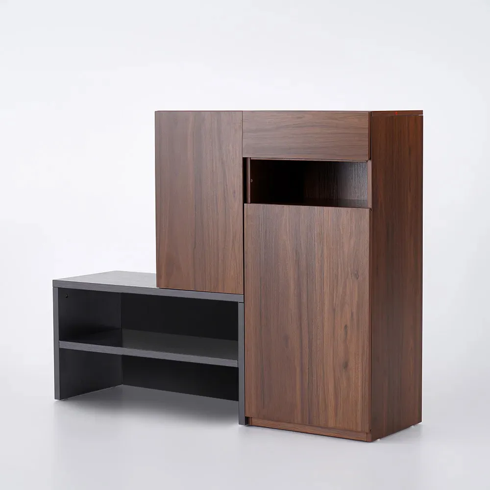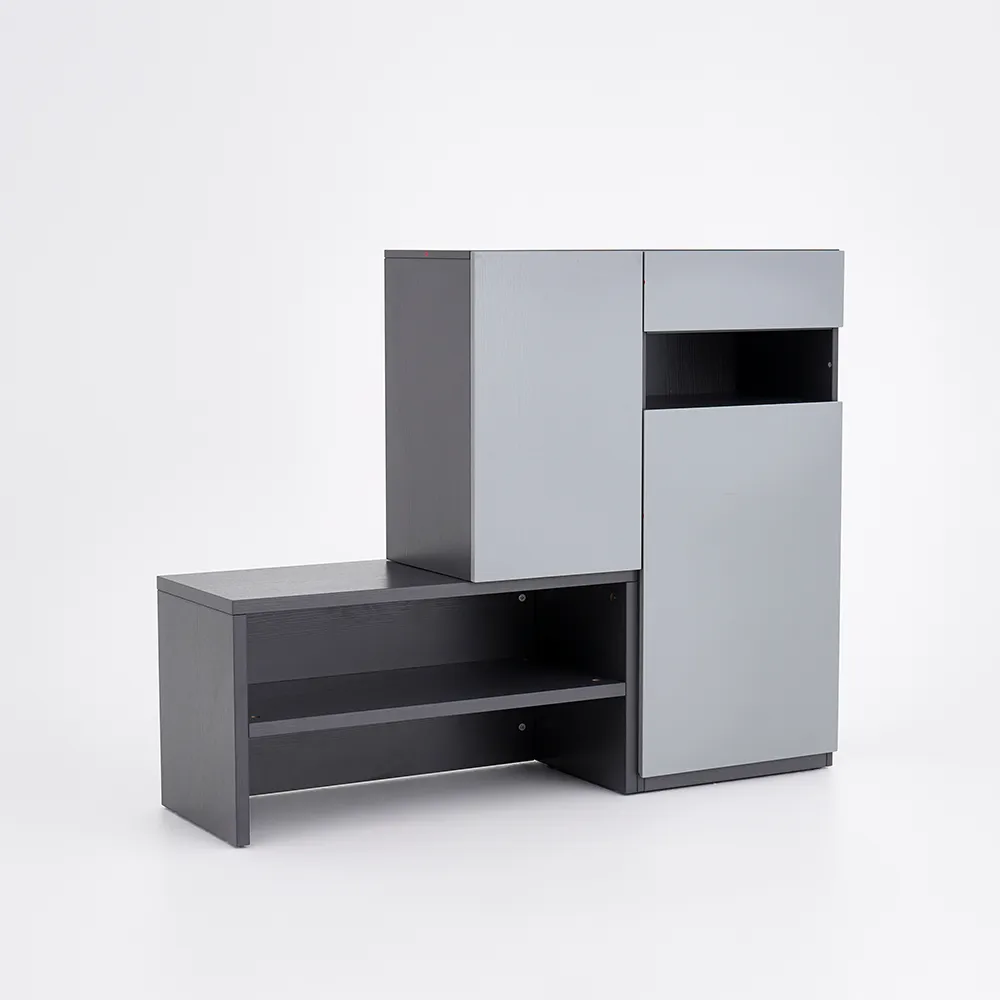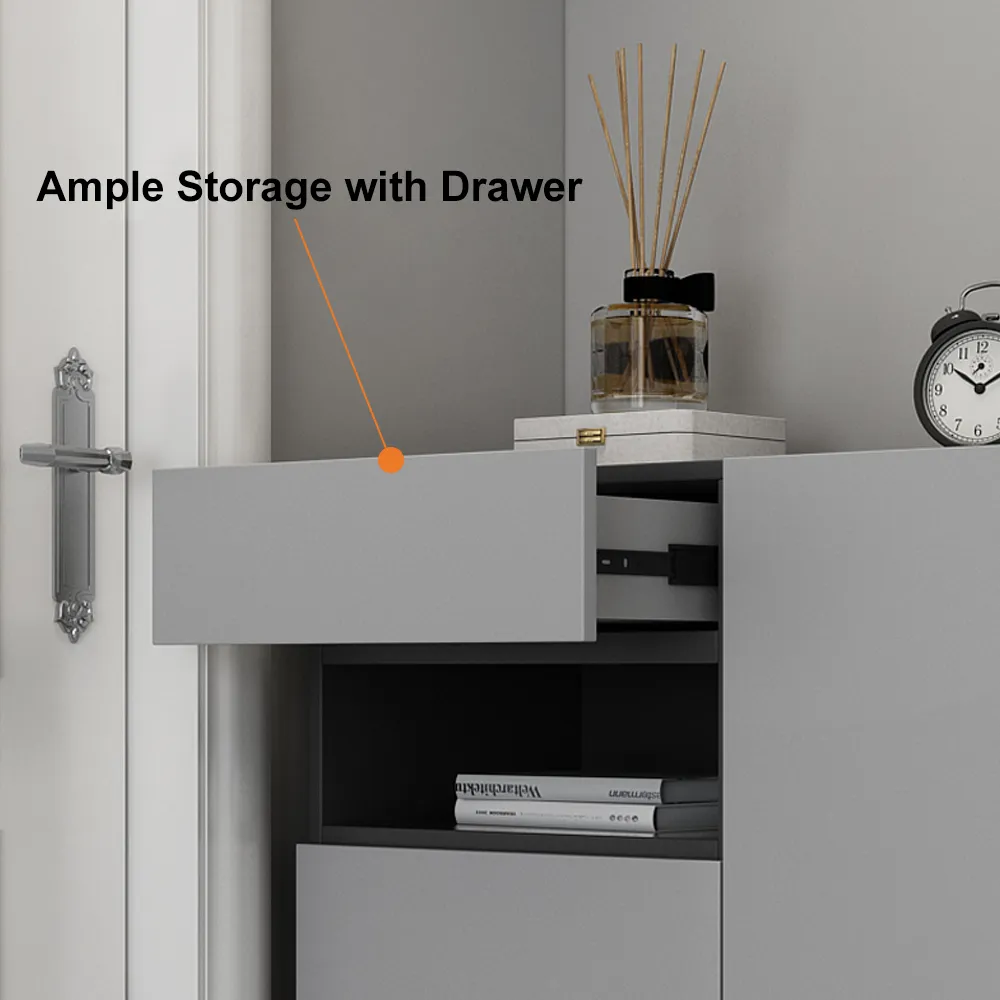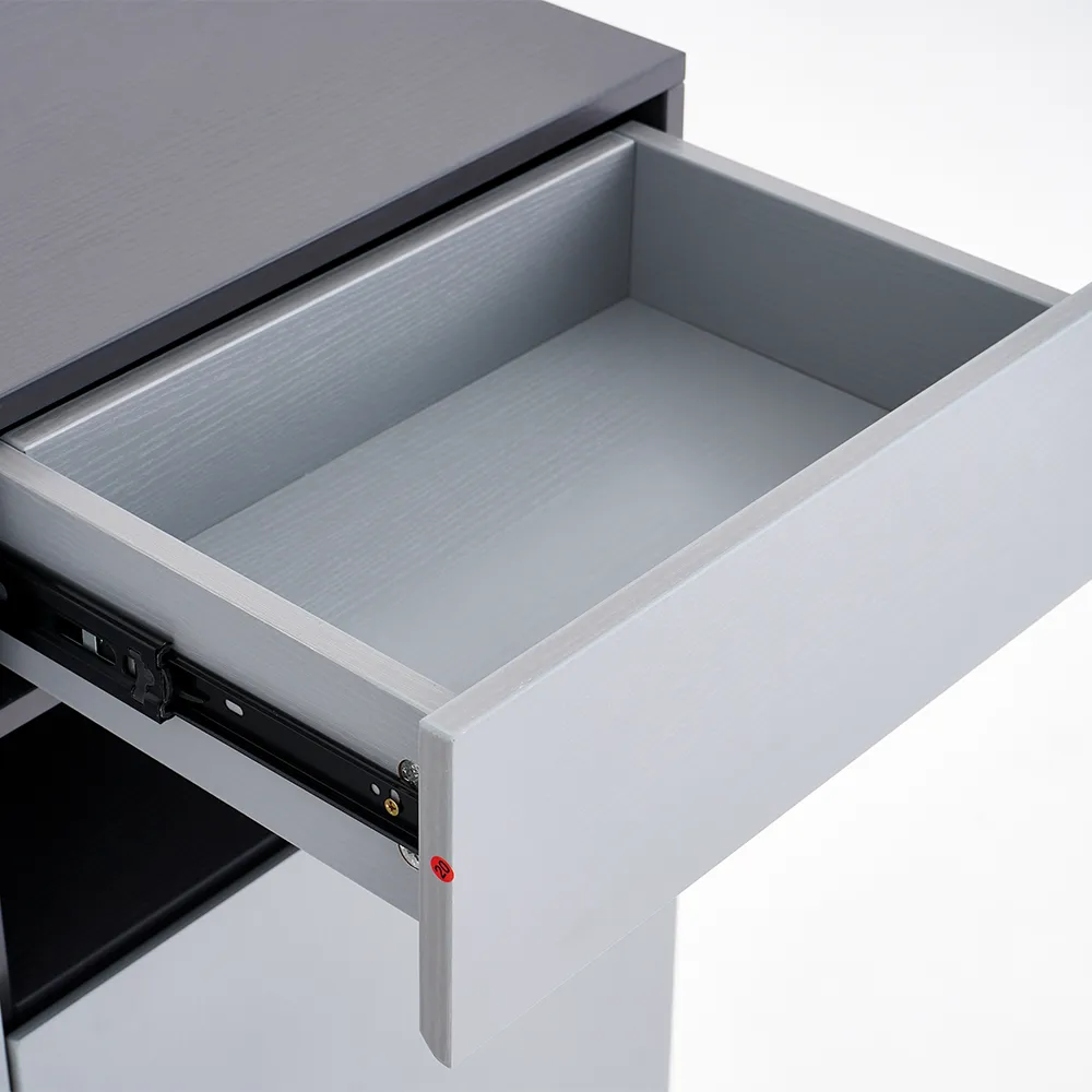 1. توفر الجزامة مساحة كبية للتخزين من خلال زوج من الضلف مع درج علوي وجزء إضافي قابل للتحريك.