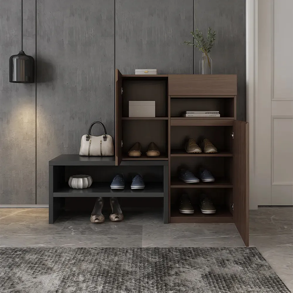 إذا كنت تبحث عن جزامة خشب مودرن أنيقة وعملية في الوقت ذاته، فإن “ستيفالي” هي الخيار الأمثل لك. صُممت لتجمع بين الجمال المعاصر والوظيفة العملية، بفضل تصميمها الذكي الذي يتناسب مع الزوايا ويوفر مساحة تخزين كبيرة للأحذية والأغراض الشخصية.