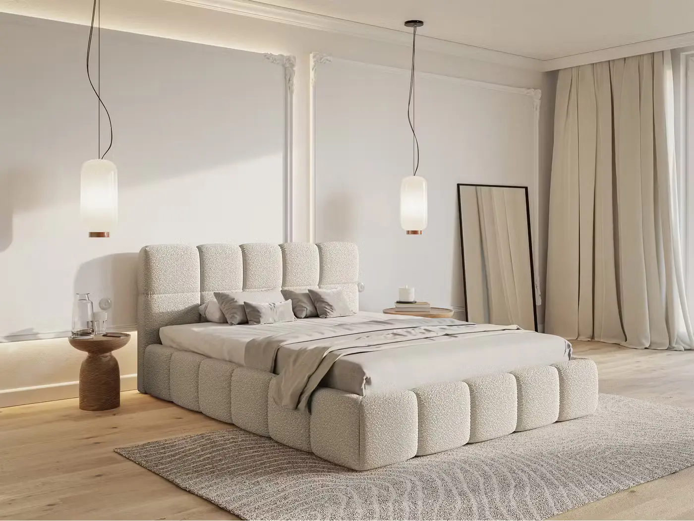 ما نوع الديكور المناسب لهذا السرير؟ تصميمه المبطّن ودفء لونه الطبيعي يجعله مثاليًا للديكورات العصرية، الاسكندنافية، أو حتى البوهيمية البسيطة.