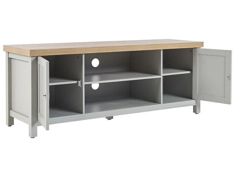 2. وحدة تخزين متعددة الاستخدامات: لا تقتصر الطاولة على دعم التلفزيون فحسب، بل تعمل أيضًا كحل تخزين مبتكر لتنظيم الإكسسوارات والمعدات الأخرى في غرفة المعيشة.