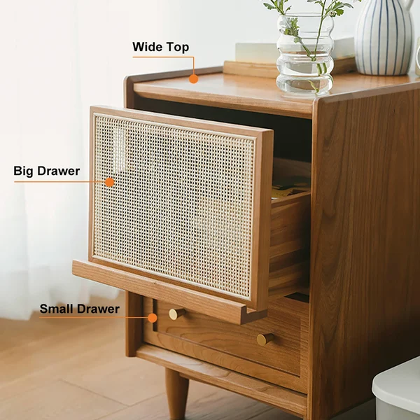 - مساحة إضافية لضرورياتك: مع توفر الأدراج والرف المفتوح، ستتمكن من تنظيم أغراضك الليلية مثل كتبك المفضلة، مستحضرات العناية الشخصية أو حتى جهاز التحكم عن بُعد بطريقة مرتبة وسهلة الوصول.