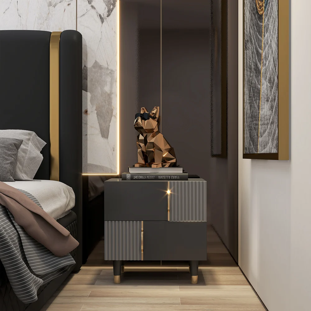 مميزات طاولة غرفة نوم 2 درج أسود مع رمادي دينزي