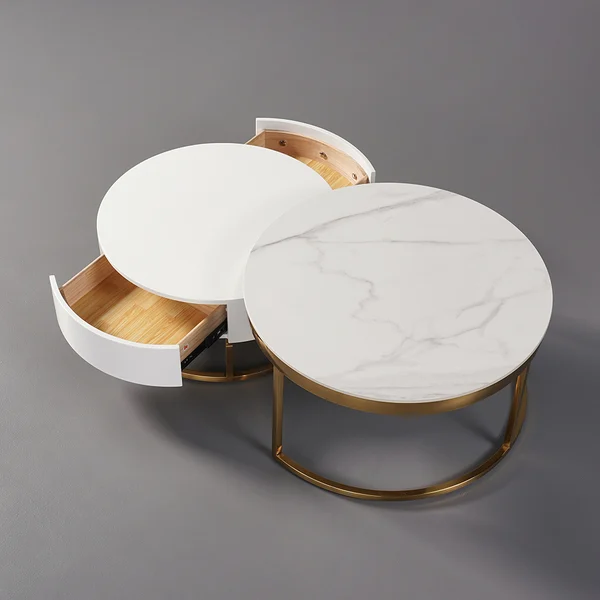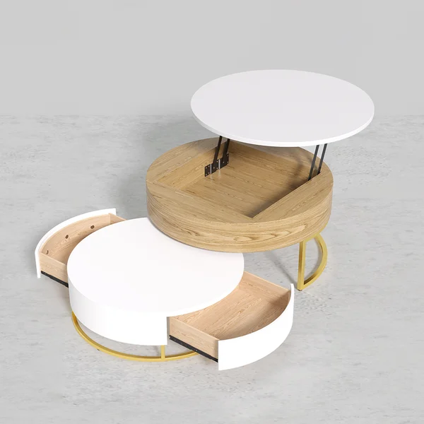 - تصميم فريد وعصري: تتميز الطاولة بشكلها الدائري المميز، مع تشطيبات دقيقة من الخشب والمعدن، مما يجعلها مثالية لإضفاء لمسة فاخرة وأنيقة في أي مساحة.